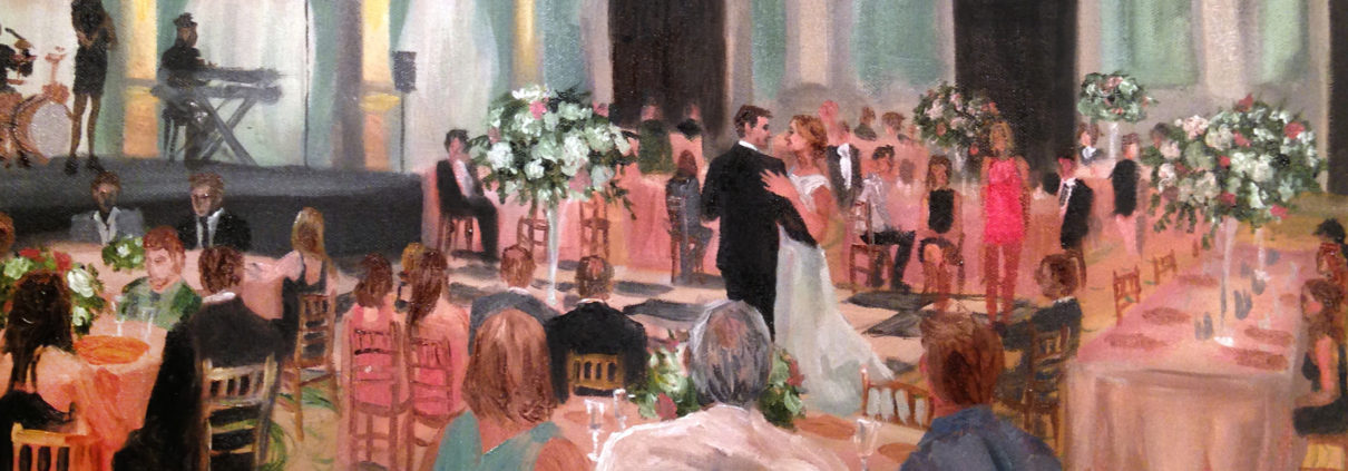 I am an event painter. What is an event painter, you ask? We’re pretty rare; I go to corporate events, parties, weddings, fashion shows, and I paint the scene as it’s happening. It’s half entertainment, half recording the event as it goes on around me. You are probably familiar with it if you’ve been to Paris, or gone to the Kentucky Derby. Live painting is a strange concept everywhere else. I picked up the habit while attending middle and high school, when I started to bring my sketchbook everywhere I went and I would constantly ask to draw portraits of people. Some people said no, but most people were curious to see what they looked like through someone else’s eyes. My first drawings were not masterworks, but eventually I got faster and made better decisions when I sat down to draw, and some of my art was pretty good.